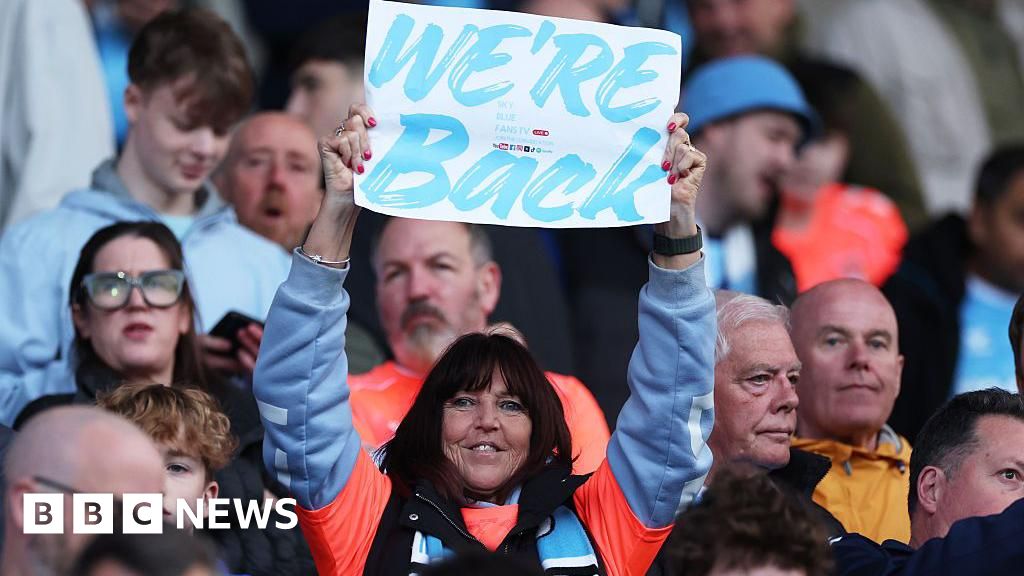Getty Images A female fan holds up a sign reading "We're Back"Getty Images