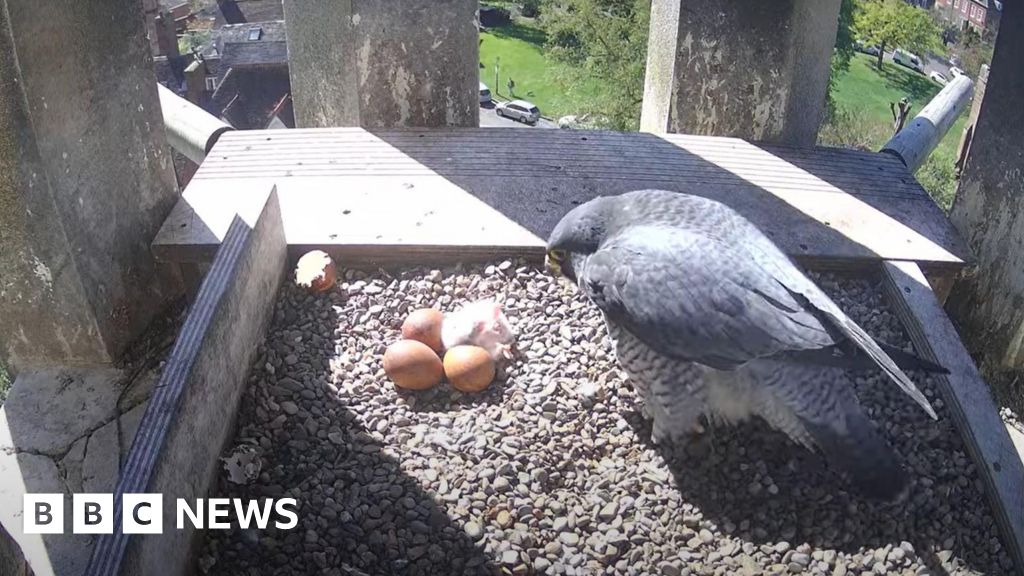 The female falcon, known as Peggy among her viewers, has returned to the same nesting box with her partner, known as Peter, every year since 2022.