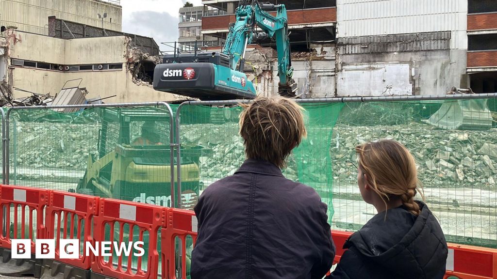 David Freezer/BBCThe long-anticipated demolition of a 1960s shopping complex is proving to be something of a tourist attraction after work finally began.
