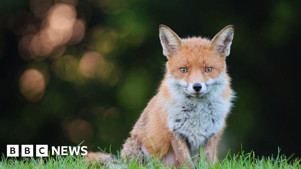 Getty Images Close up of orange fox stood in green grass, with bushes in the background.Getty Images