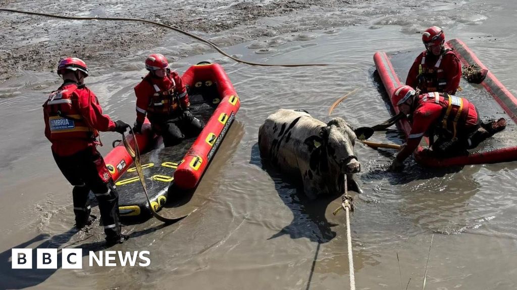 Carlisle East fire stationFour cows were rescued after they broke out of their enclosure and got trapped in quicksand.