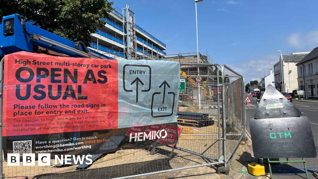 George Carden/BBCBusinesses in Worthing say disruption caused by the installation of the town's low carbon heat network is affecting trade.