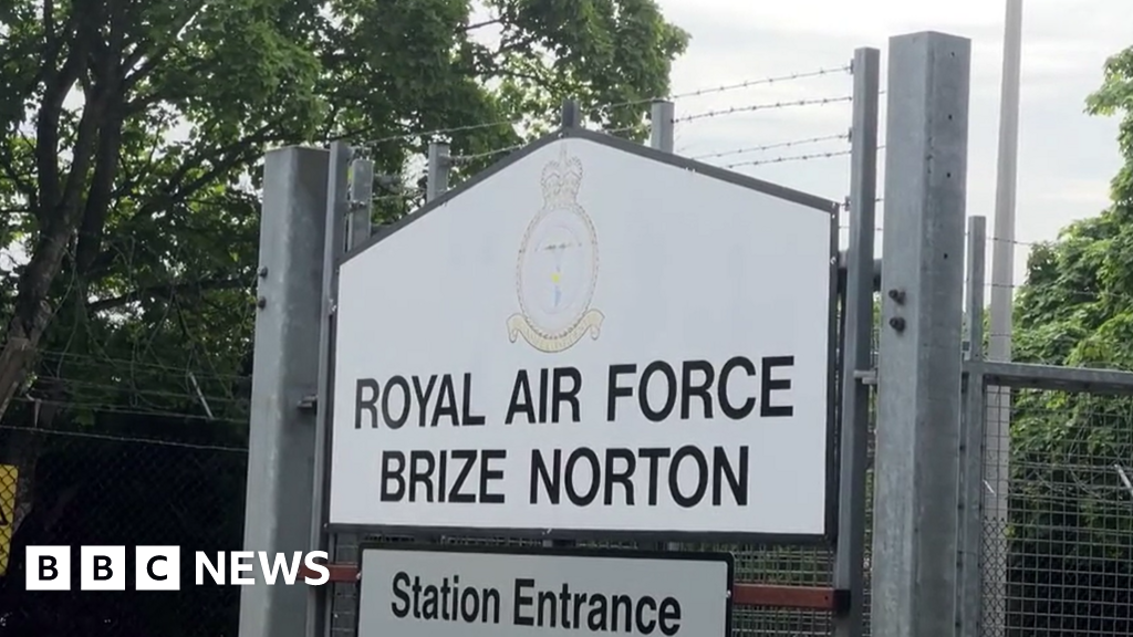 BBC A close up of the sign of the entrance to RAF Brize Norton. BBC