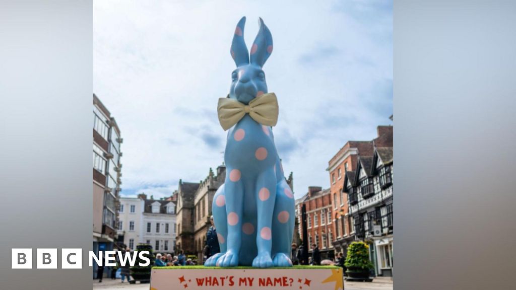 Shropshire CouncilA large statue of a bunny has appeared in a town centre as part of an Easter trail.