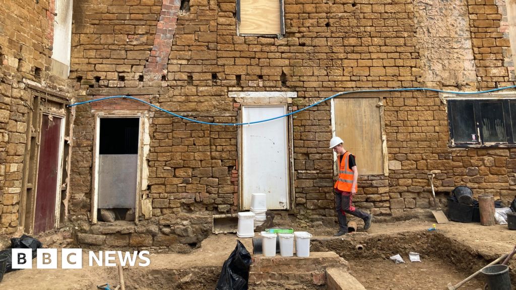 Martin Heath/BBC- Archaeologists have discovered the site of a derelict 16th Century Northampton pub in fact dates back to about 1150