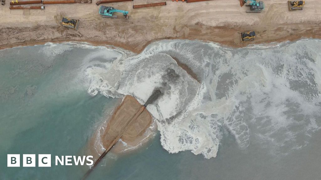 The work started on Tuesday and is being carried out round the clock for about 30 days. After the shingle has been pumped ashore in piles, it will be moved along the beach using dumpers and moved into place using bulldozers and diggers.