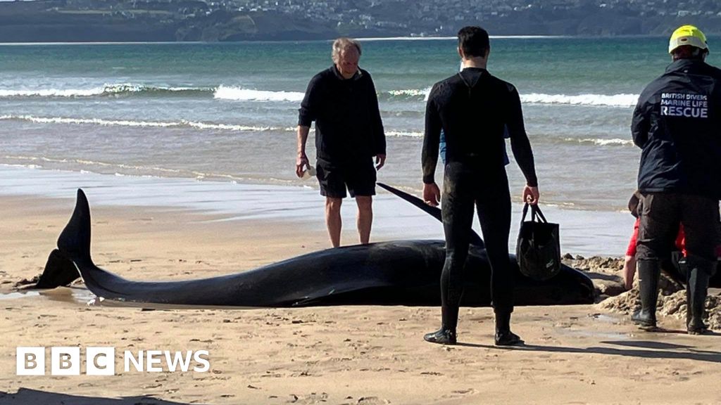 Derek EmeryAn emergency rescue is underway after a whale beached in Cornwall.