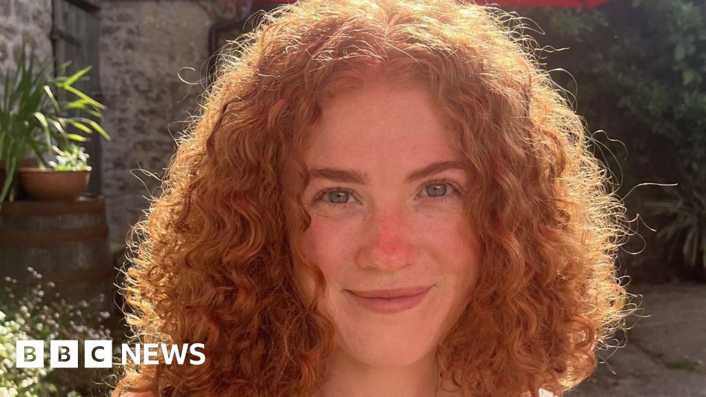 BBC Gemma is a young woman, smiling into the camera. The sun is shining on her curly red hair. The background behind her is a stone wall with some green plants.BBC