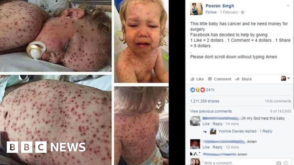 A mother has told BBC 5 live that scammers operating on Facebook are using pictures of her son’s chickenpox to pretend that he has cancer and get more than a million likes and shares.