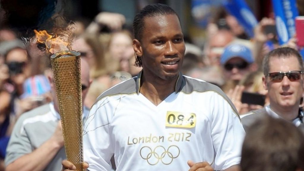 The Ivory Coast captain carried the Olympic flame on day five of the torch's journey around the UK, ahead of the opening ceremony in London on 27 July.