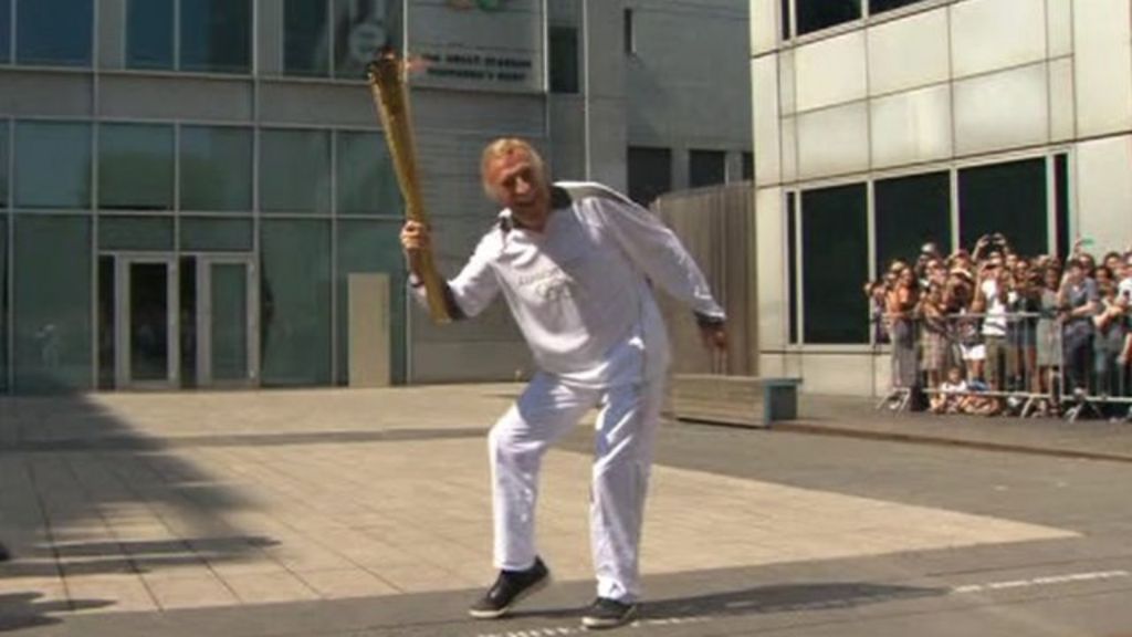 'Nice to see you!' Sir Bruce Forsyth carries Olympic torch