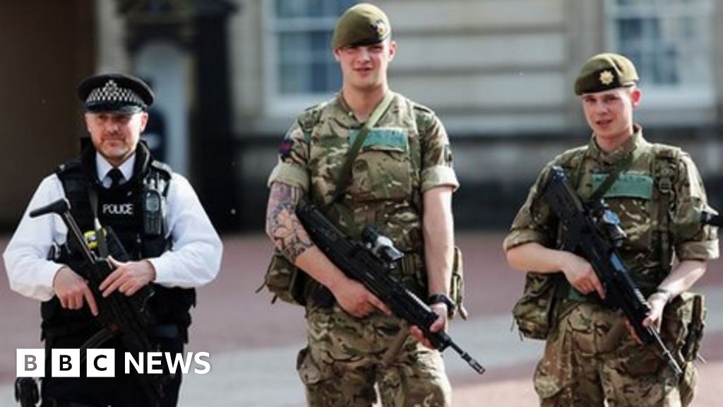 Manchester attack: Army backs up police on streetsTo play this video you need to enable JavaScript in your browser.This video can not be playedManchester attack: Army backs up police on streetsCloseSoldiers have joined armed police on the streets following Monday's bombing at Manchester Arena.SubsectionUKPublished24 May 2017Shareclose panelShare pageCopy linkAbout sharingRead description