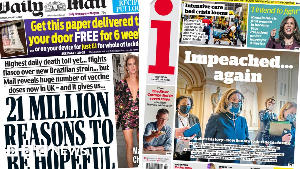 Newspaper headlines: 'Over 21m jabs now in UK', and Trump impeached