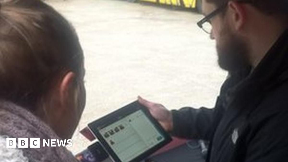 Burger stall owner Tom Reaney can take card payments via his iPad