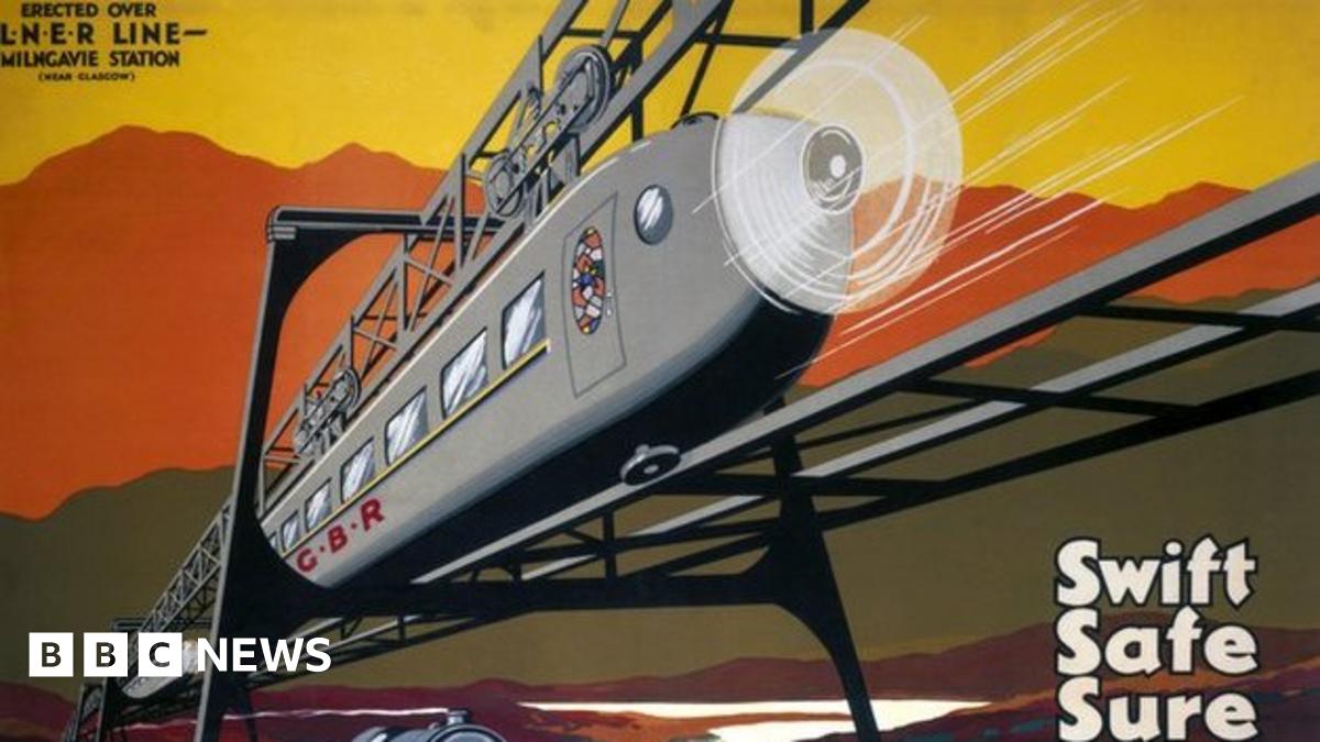 George Bennie's Railplane - a suspended carriage driven by propellers fore and aft - made it to the prototype stage near Glasgow in 1930, but did not then get commercial backing. Bennie went bust in 1937.