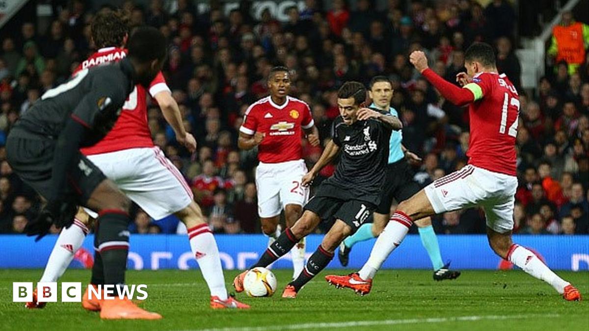 Philippe Coutinho of Liverpool is blocked by Chris Smalling of Manchester UnitedImage source, Getty Images