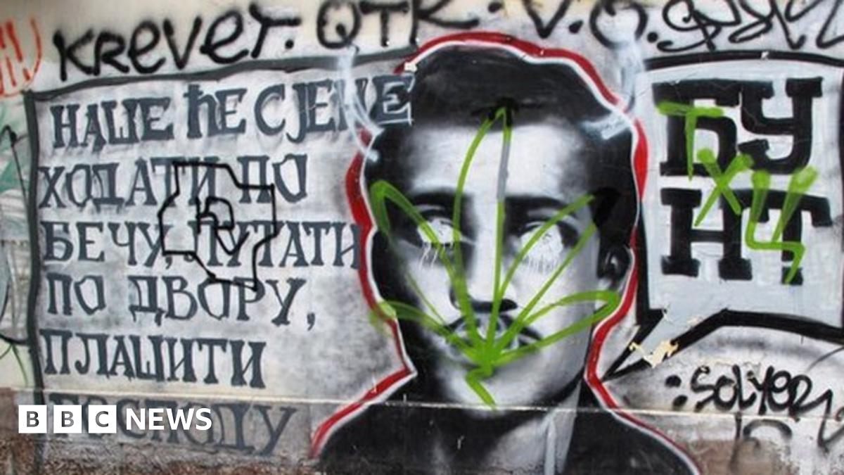 Graffiti of Gavrilo Princip in Belgrade, Serbia. Text reads: "Our ghosts will wander through Vienna, stroll around the palaces and scare the masters."