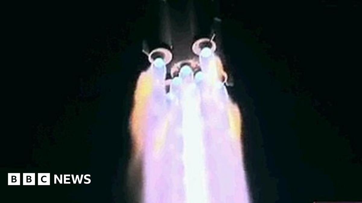 The Long March carrier rocket lifted away from the Jiuquan spaceport in the Gobi Desert at 05:58, Tuesday (21:58 GMT Monday). TV cameras relayed the ascent to orbit.