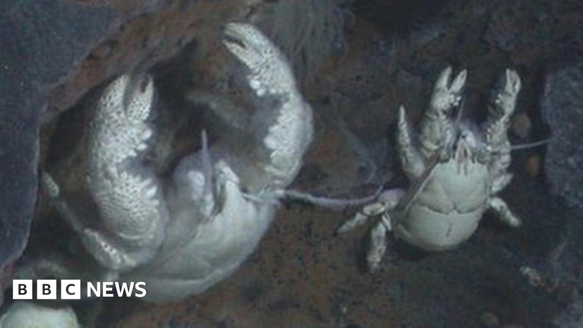 Hoff crabs filmed around volcanic vents on the Southern Ocean floor