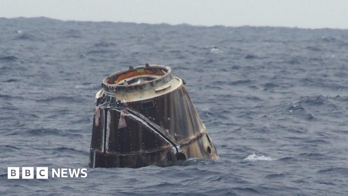 Fast boats positioned in the splashdown zone were despatched to recover the unmanned capsule.