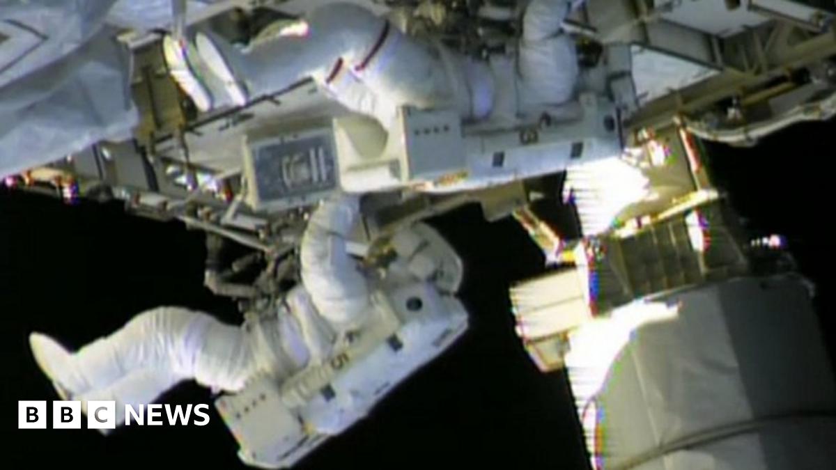 "No leaks! We're bringing Tom & Chris back inside," Mr Hadfield wrote on his Twitter, external account, some four and a half hours into the spacewalk.