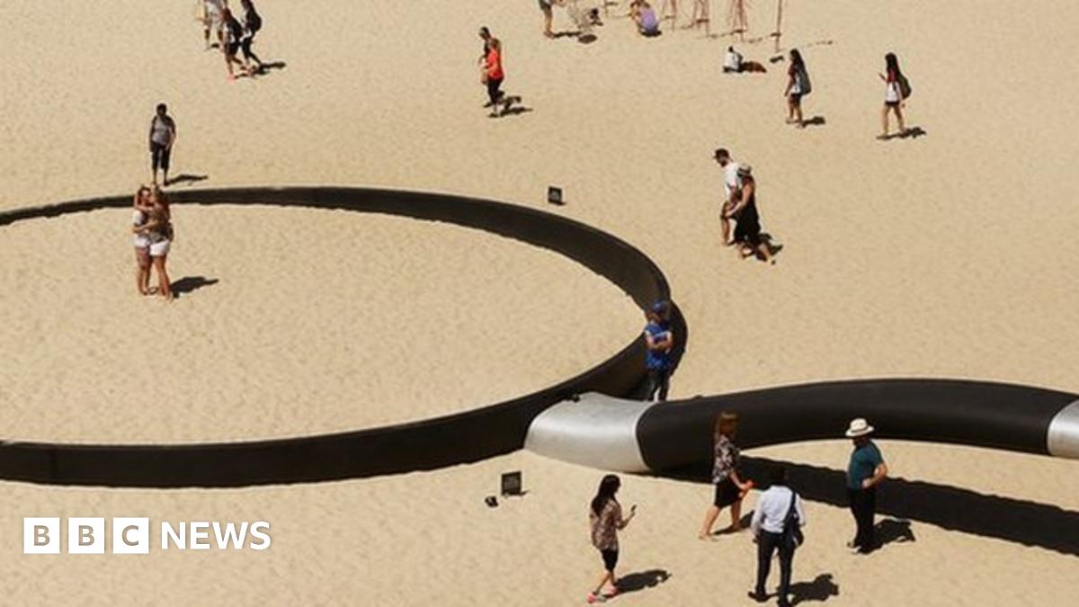 A sculpture called "We're fryin' out here" at a beach in Sydney