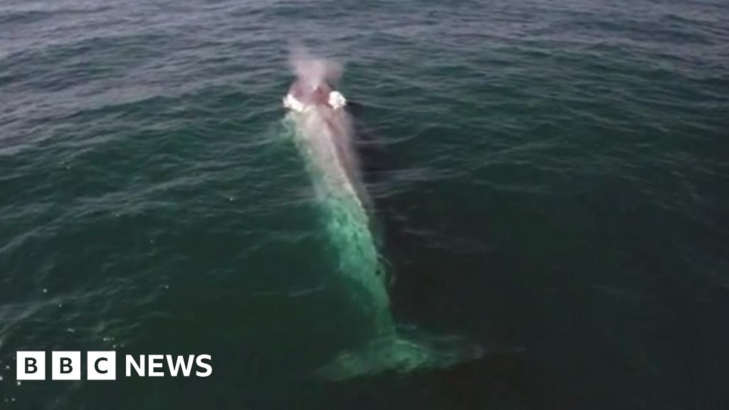 Blue whale's perfect timing to upstage TV presenter