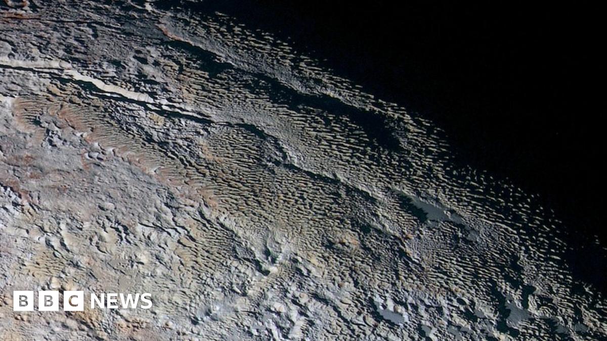 The mosaic includes a segment of so-called Sputnik Planum. Incorporating a series of large polygonal features, in previous releases the icy surface has appeared to be ultra-smooth. But in this new higher-resolution view, it is possible to see a more dune-like and pitted texture.