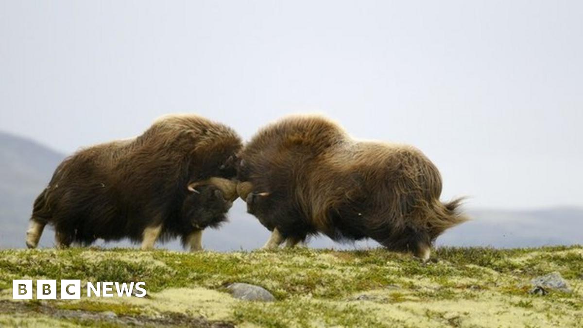 "Headbutts": Two male muskox in Dovrefjell, Norway, engage in a prolonged series of head-to-head clashes until one of them yields