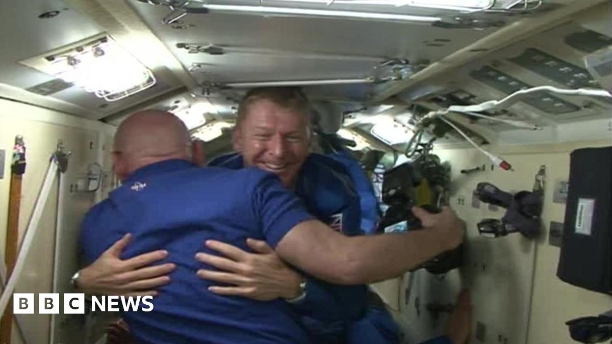 Mr Peake and fellow crew members, Russian Yuri Malenchenko and American Tim Kopra, floated through the hatch from their Soyuz space capsule to be greeted by the resident ISS astronauts.