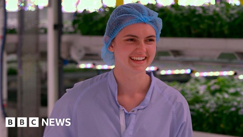 Beth Campbell, 21, is a research assistant at a vertical farm in Scunthorpe which uses renewable energy to grow crops which are then sold locally.