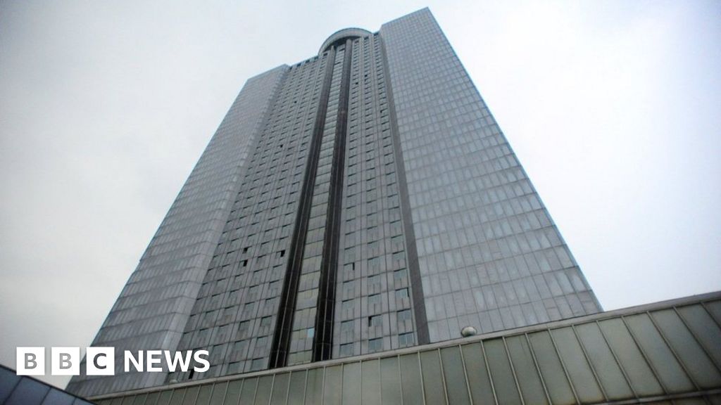 Calvin SunAt 47 storeys, the Yanggakdo International Hotel is one of North Korea's tallest buildings. It's located on an island in the middle of the Taedong river, and boasts four restaurants, a bowling alley and massage parlours. TVs in bedrooms play dated BBC World News reports on a loop.