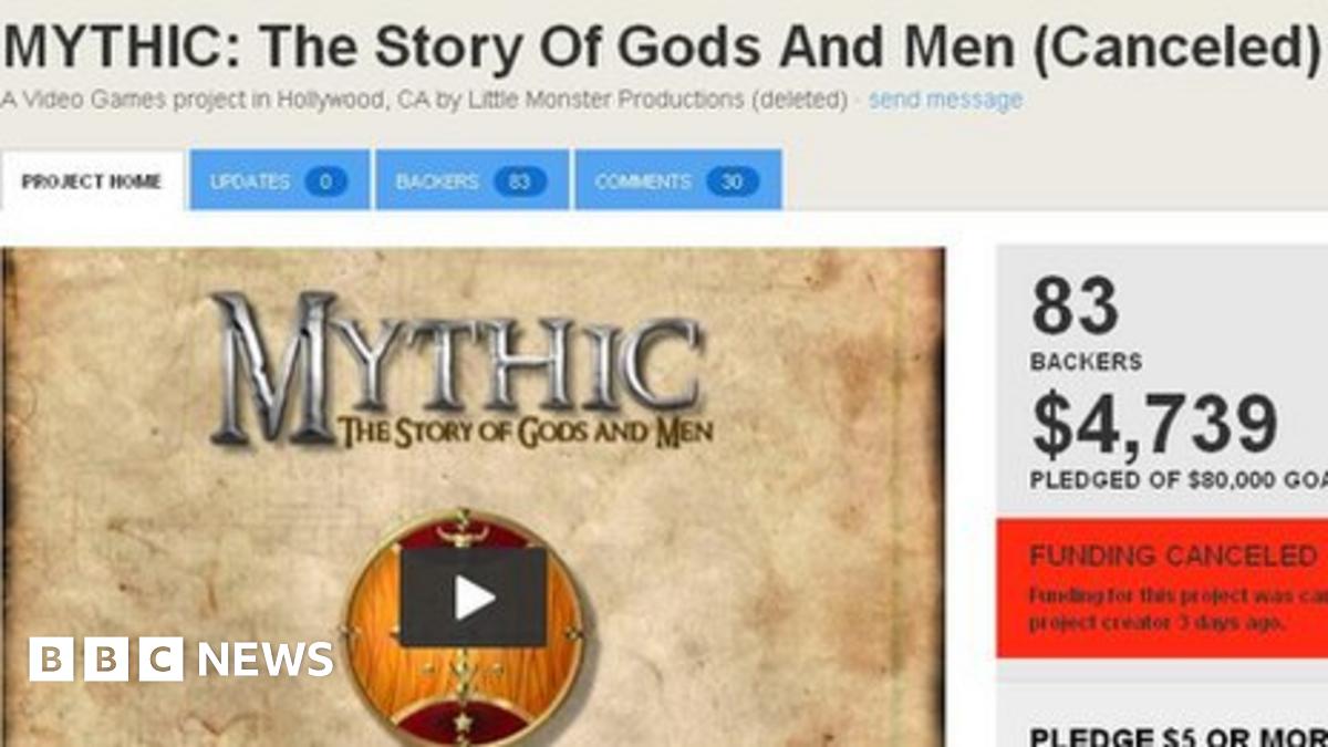 The project <link> <caption>had $4,739 (£2,922) in pledges</caption> <url href="http://www.kickstarter.com/projects/273246798/mythic-the-story-of-gods-and-men" platform="highweb"/> </link> out of a target of $80,000 at the point it was pulled by its creator.