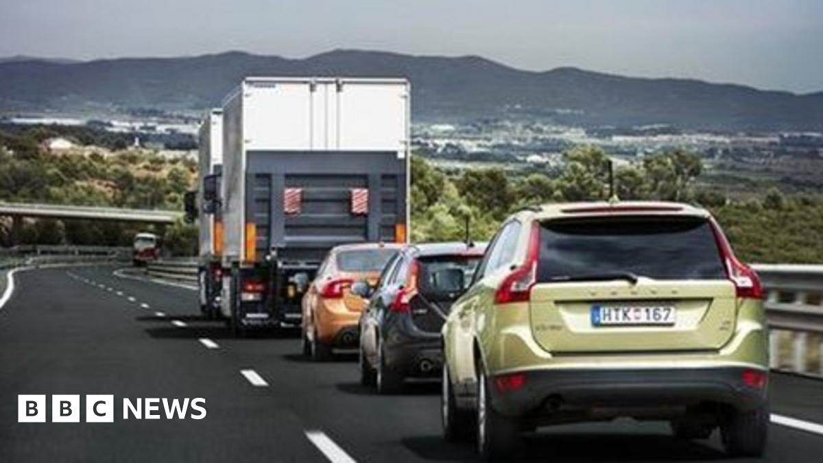 The so-called road train has been developed by Volvo. The firm is confident that they will be widely available in future.