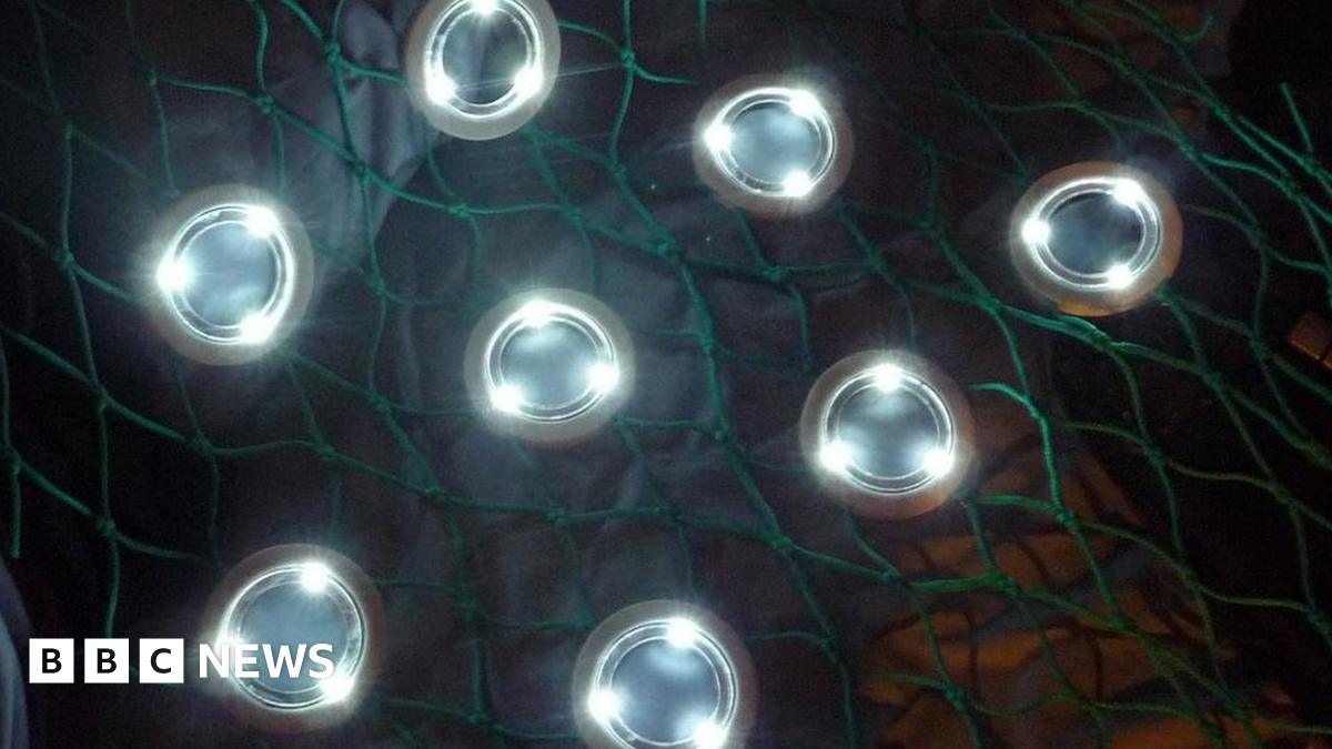 The lights are activated once the net sinks to a certain depth, making the rings more visible and also stimulating the fish to swim towards them.
