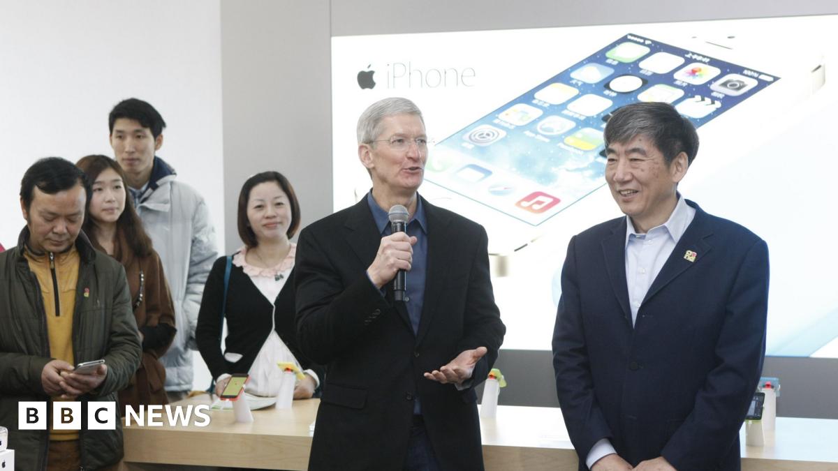 Apple chief executive Tim Cook, whose firm has hit back at Chinese criticism, during a visit to Beijing