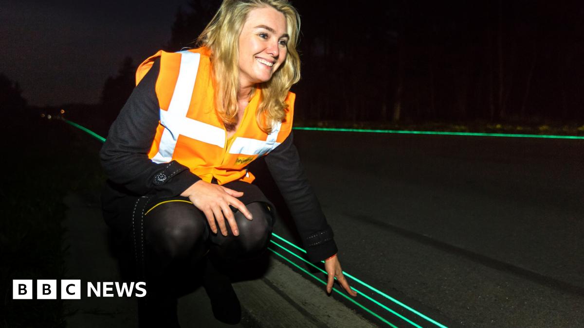 A stretch of glow-in-the-dark road markings has been installed in the Netherlands after being proposed as one of several "smart highway" features that could be put to wide use.