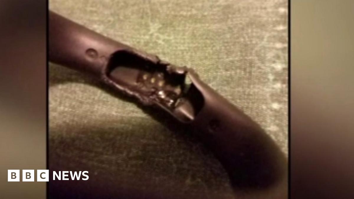 A doctor had to take small pieces of plastic and rubber out of the wound following the incident, she claimed.