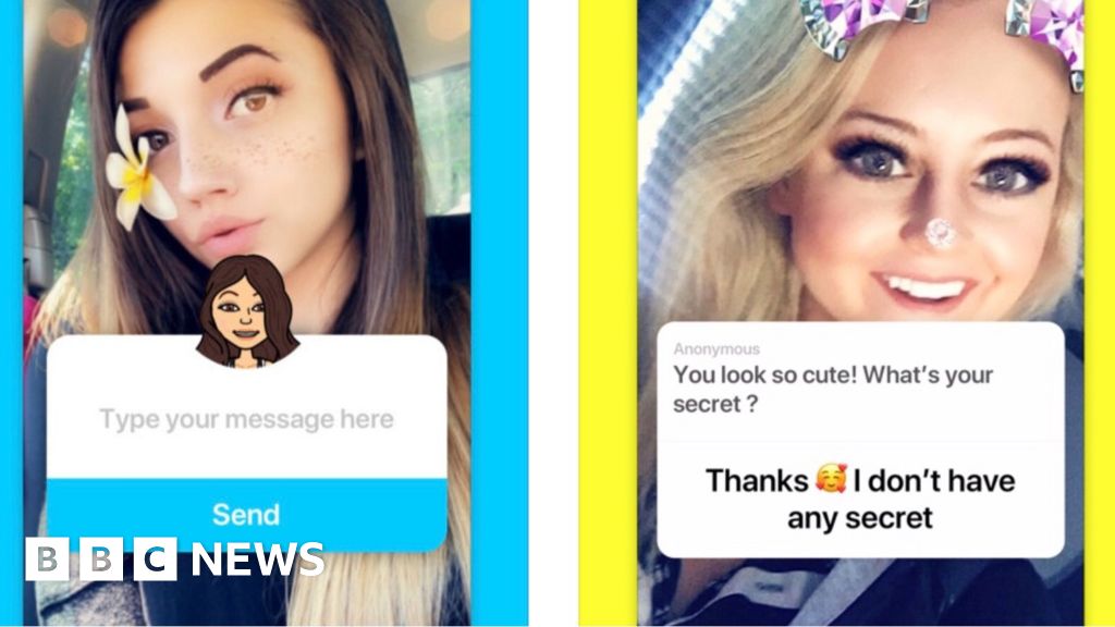 The app works by letting people post a graphic inviting others to "send me anonymous messages", which is superimposed over a photo.
