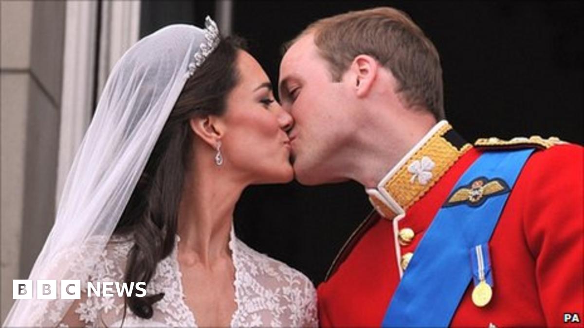 Prince William and Kate Middleton kiss on the balcony of Buckingham Palace