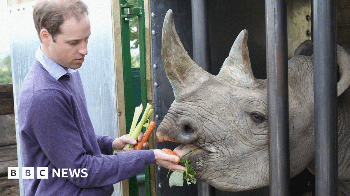 As he fed Zawadi, a five-year-old female now in Tanzania, Prince William explained that his love of rhino stemmed from his time helping to hand rear them at a friend's reserve in Kenya.