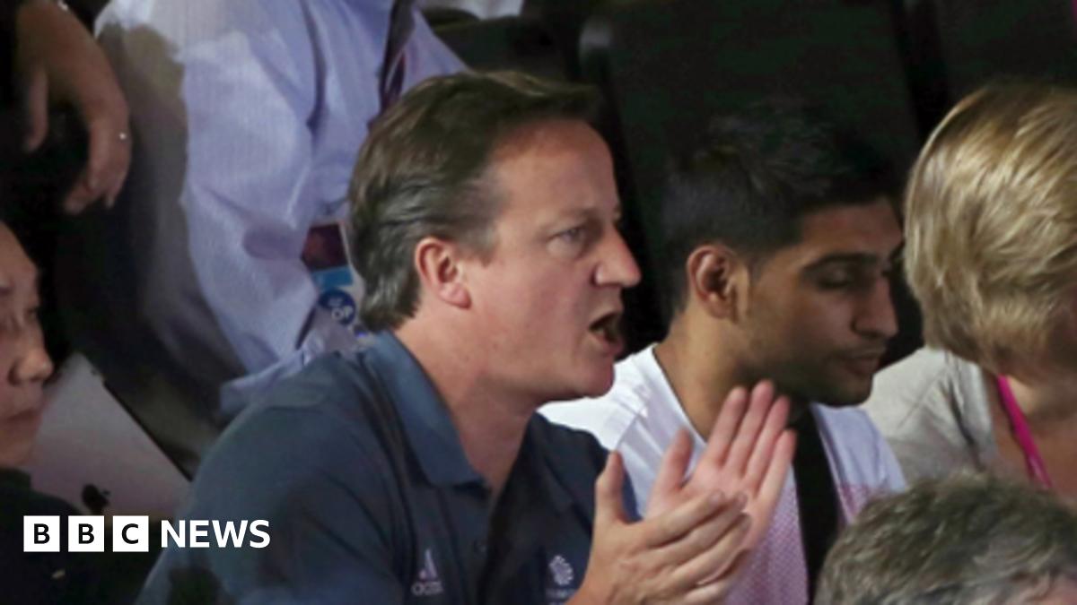 Sitting beside former Olympic silver medallist Amir Khan, Mr Cameron watched as Britain's Nicola Adams made her way into the flyweight final of the women's boxing.