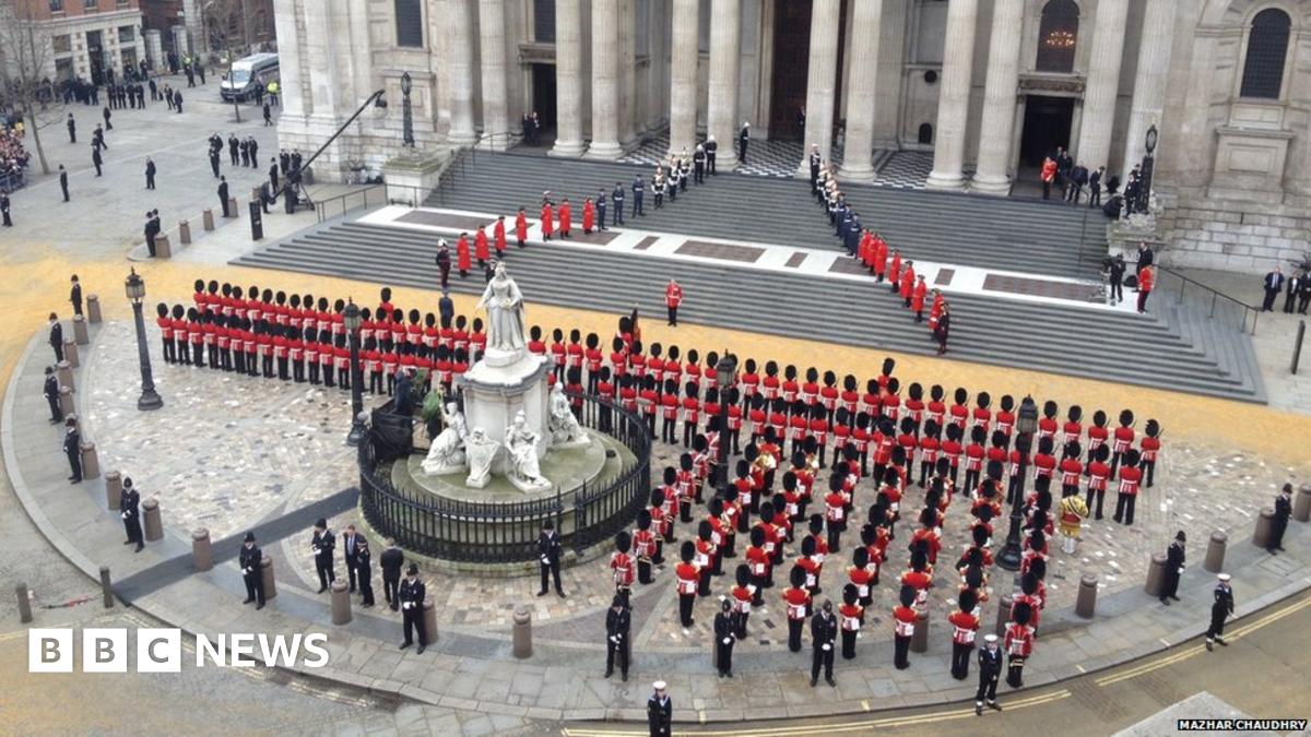 Outside St Paul's Cathedral there was a Guard of Honour for the arrival of the coffin made up of members of the 1st Battalion Welsh Guards and the Welsh Guards Band. Photo: Mazhar Chaudhry