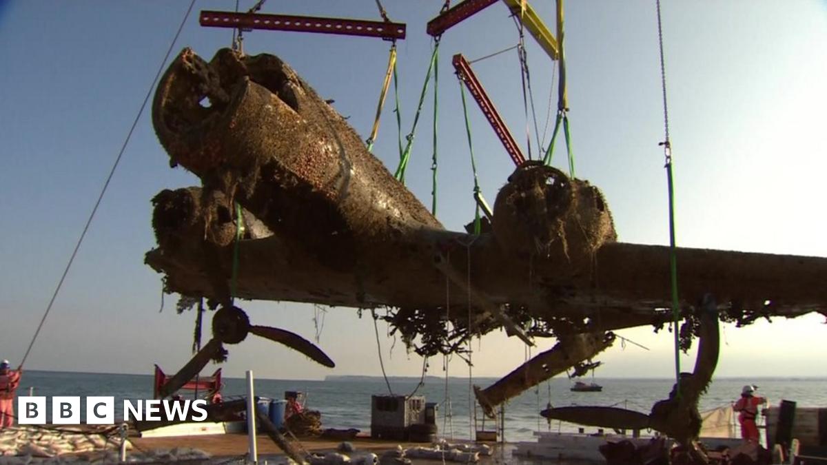 The bomber's remains were lifted on to a barge, which will dock at Ramsgate on Tuesday. Experts plan to spray the wings and fuselage with water and a combination of citric acid and sodium hydroxide in an attempt to halt corrosion.