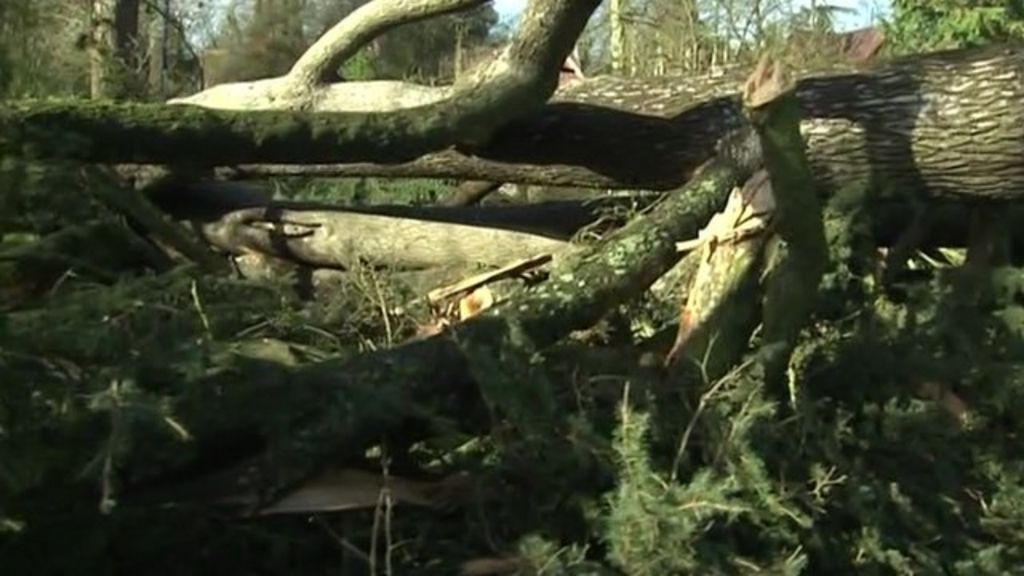 Chris Eakin reports from Hursley in Hampshire where one resident is clearing up after the storm felled a 250-year-old tree.