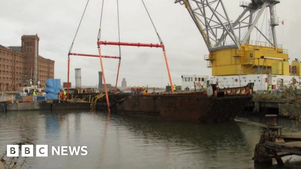 Footage of D-Day landing craft being raised from Liverpool Docks