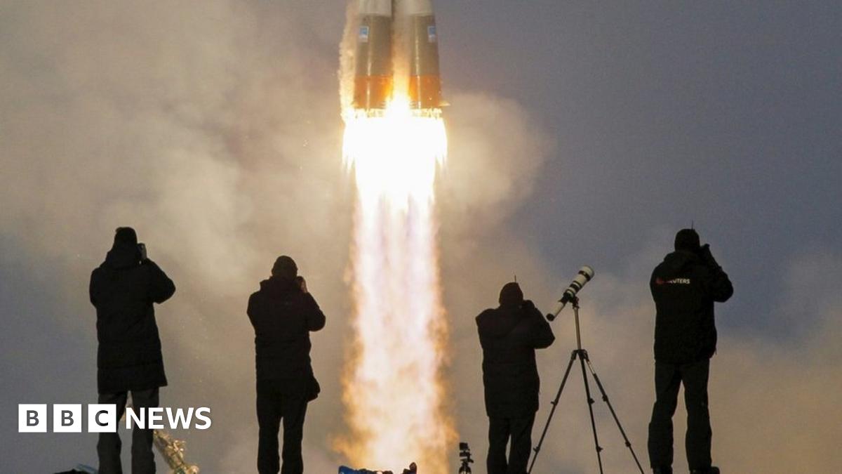 From his ringside side in the Kazakhstan desert, the BBC's Paul Rincon said the rocket blasting off was "so bright you couldn't even look at it".