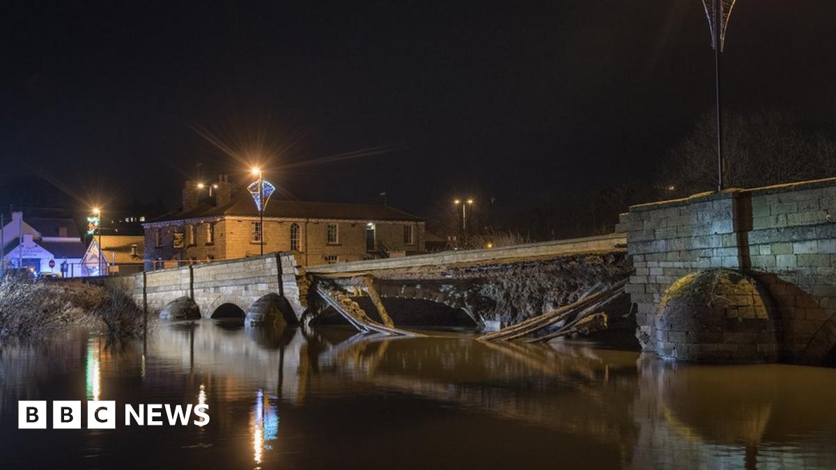 Footage showed the moment a bridge collapsed in Tadcaster, North Yorkshire