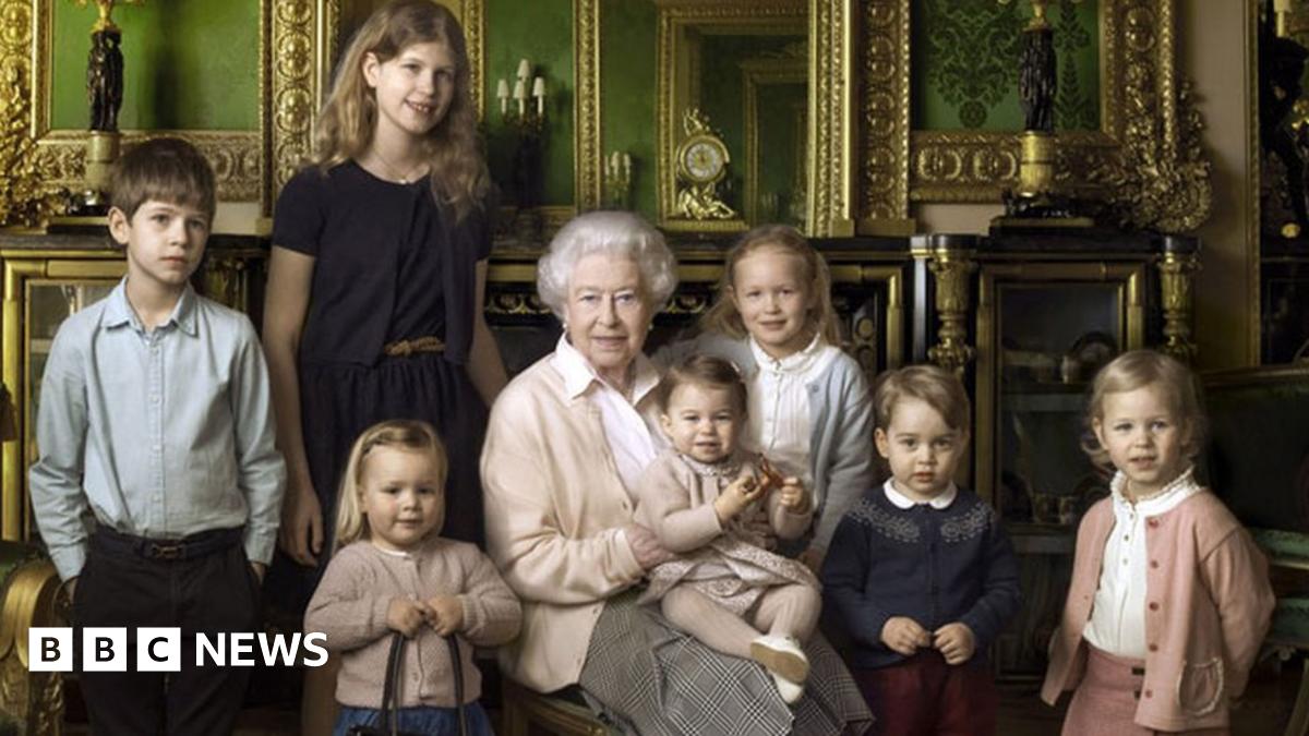 The image, one of three taken by celebrity photographer Annie Leibovitz, shows the Queen surrounded by her five great-grandchildren and her two youngest grandchildren.