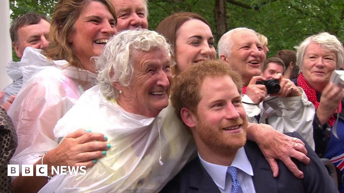Prince Harry posed for dozens of photographs with the crowd - his pose with this rain-soaked guest prompted a huge "aah" from the crowd when it appeared on the big screen